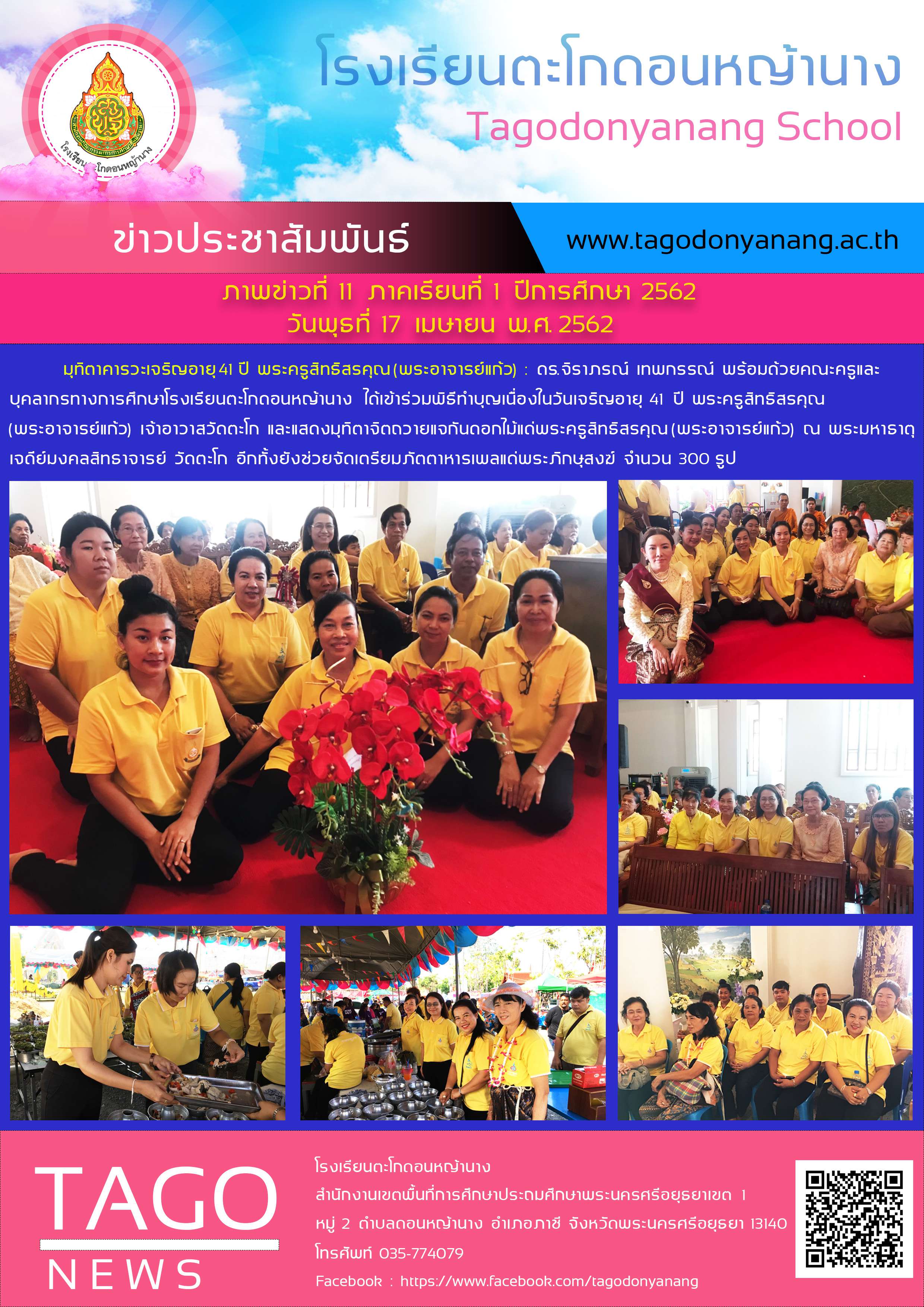มุทิตาคารวะเจริญอายุ 41 ปี พระครูสิทธิสรคุณ เจ้าอาวาสวัดตะโก