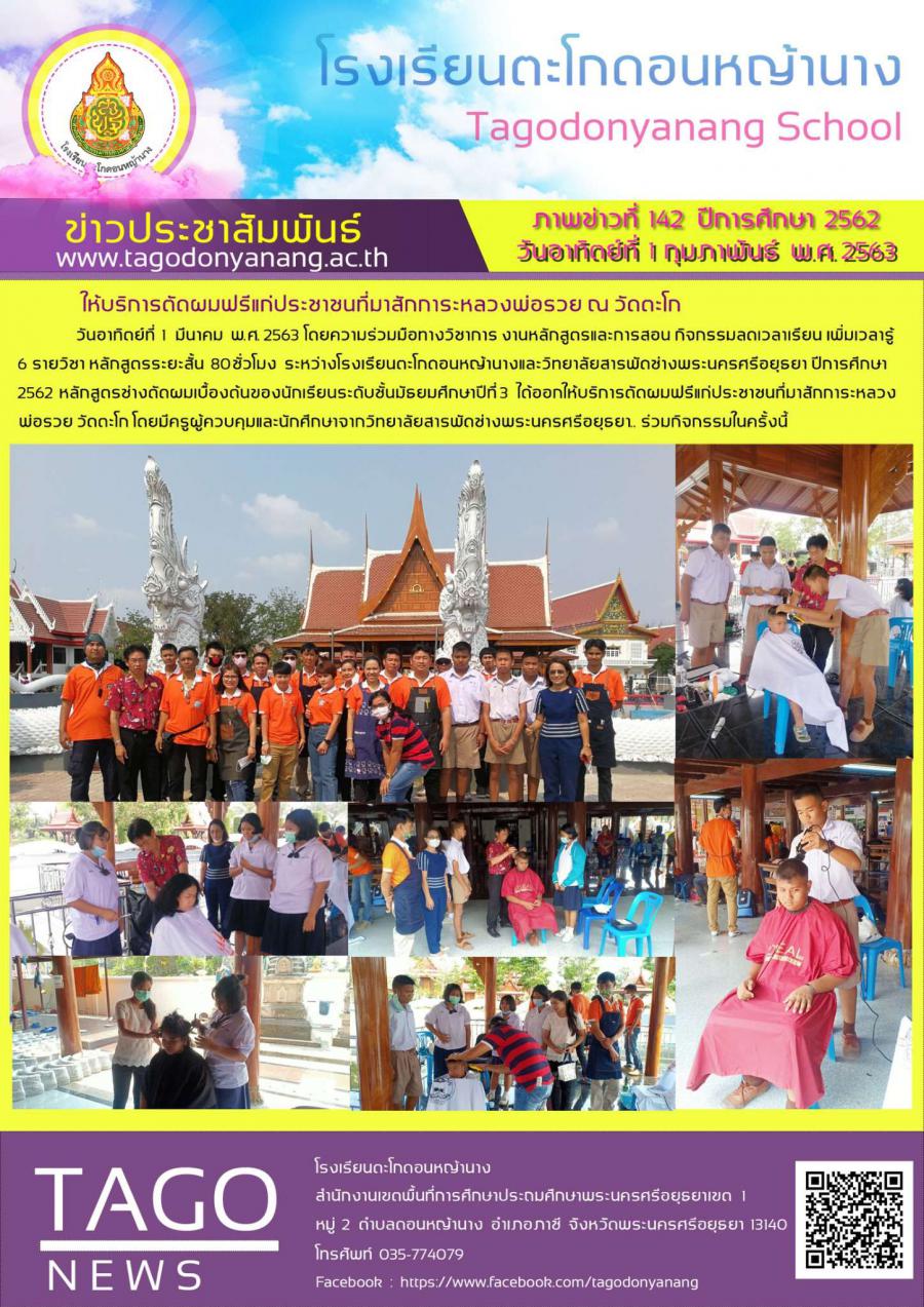 ????หลักสูตรช่างตัดผมเบื้องต้น????????ของนร.ม.3 ได้ออกให้บริการตัดผมฟรีแก่ประชาชนที่มาสักการะหลวงพ่อรวย วัดตะโก โดยมีครูผู้ควบคุมและนักศึกษาจากวิทยาลัยสารพัดช่าง อย.และวิทยาลัยอาชีวศึกษา อย. ร่วมกิจกรรมในครั้งนี้ 1 มี.ค. 2563