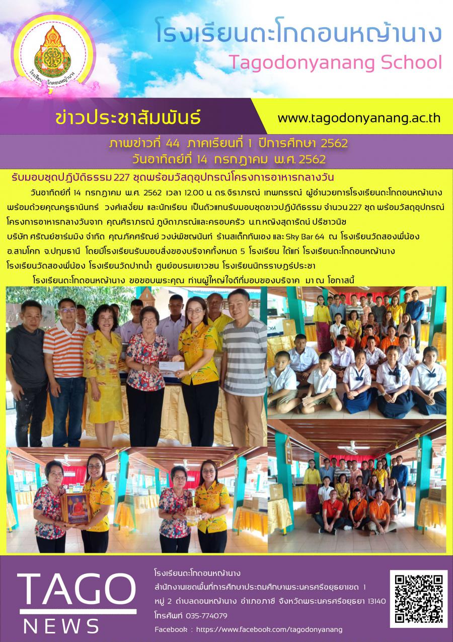 รับมอบชุดปฏิบัติธรรม 227 ชุดพร้อมวัสดุอุปกรณ์โครงการอาหารกลางวัน