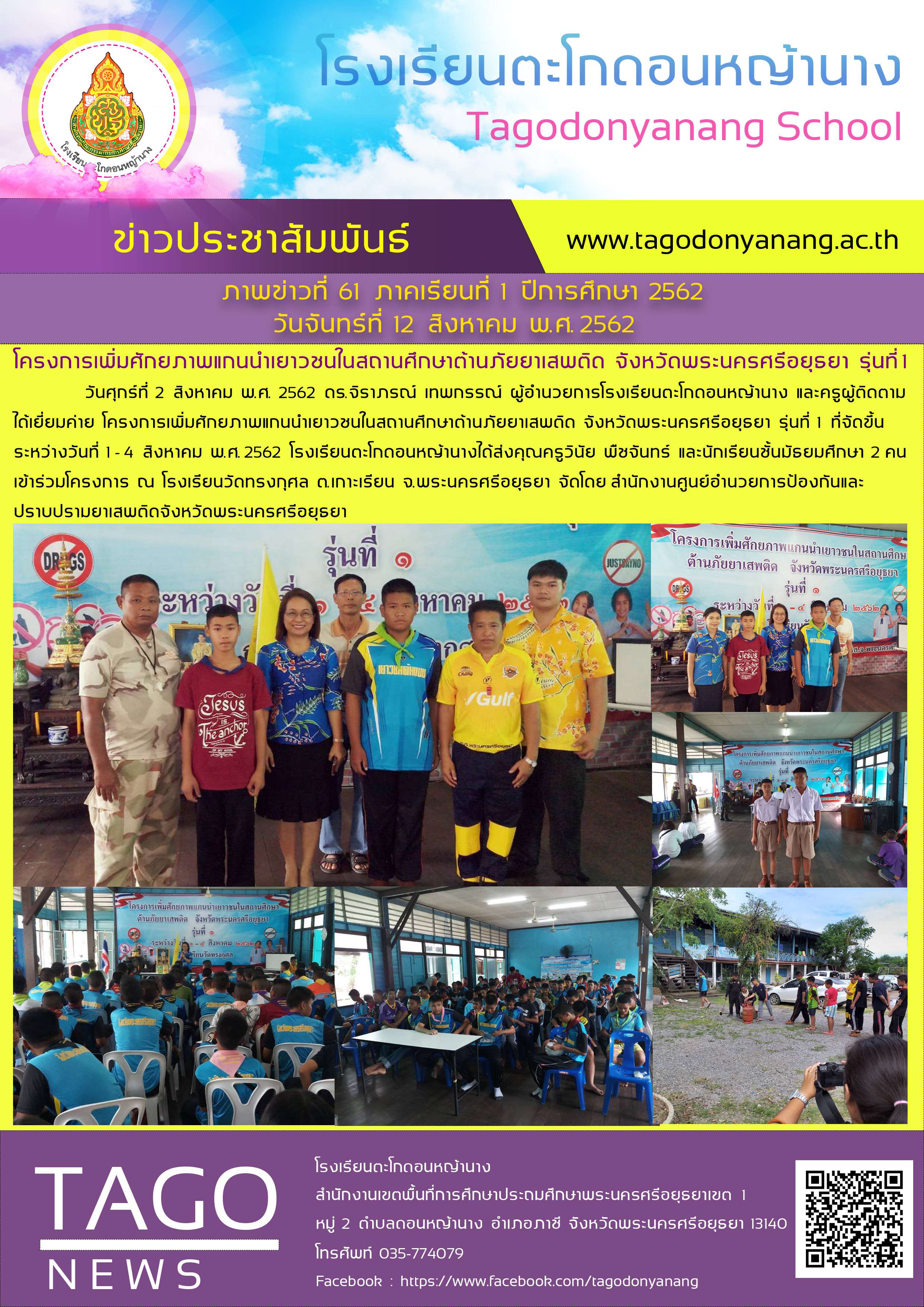 โครงการเพิ่มศักยภาพแกนนำเยาวชนในสถานศึกษาต้านภัยยาเสพติด จังหวัดพระนครศรีอยุธยา รุ่นที่ 1