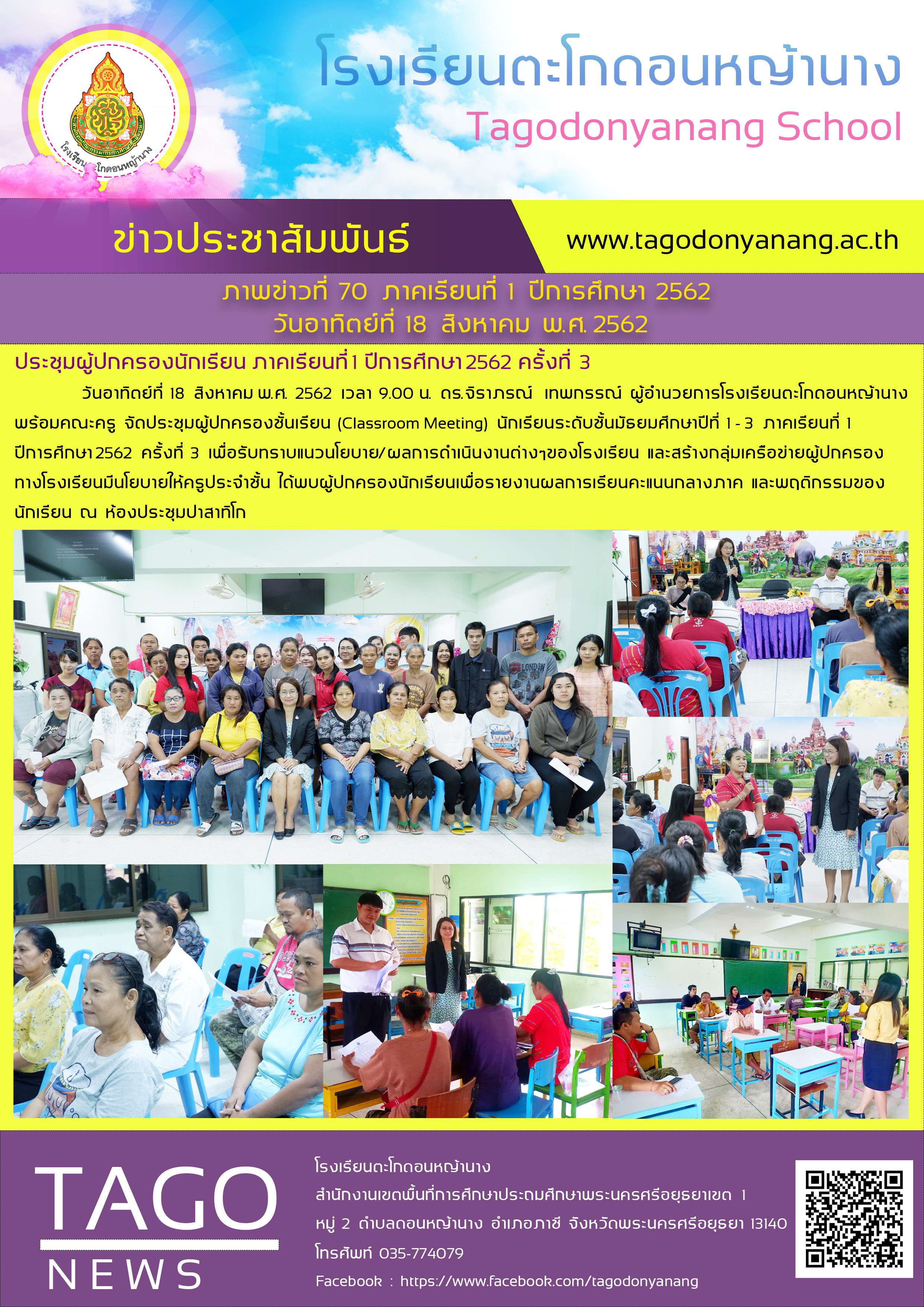 ประชุมผู้ปกครองชั้นเรียน (Classroom Meeting) นักเรียนระดับชั้นมัธยมศึกษาปีที่ 1 - 3 ภาคเรียนที่ 1 ปีการศึกษา 2562 ครั้งที่ 3